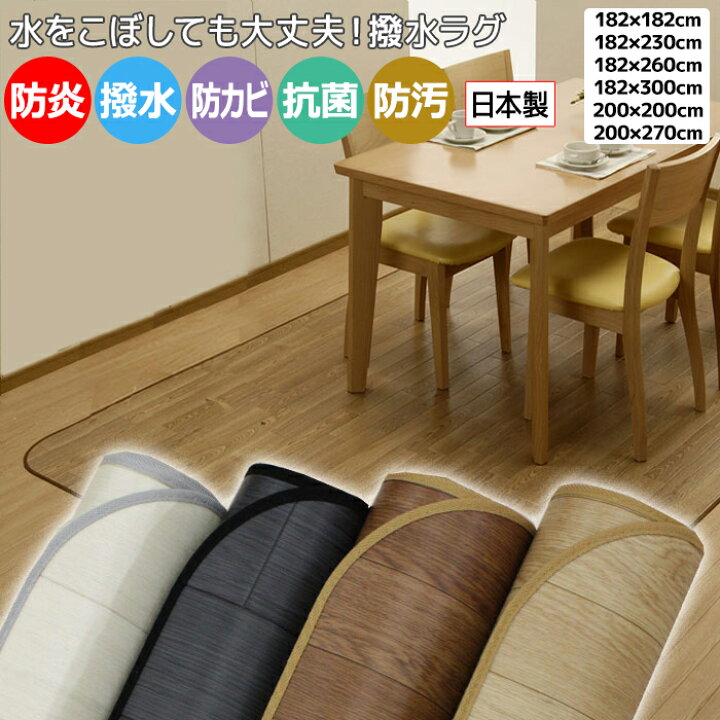 ダイニングラグ フローリングマット 拭ける おしゃれ 撥水 防カビ 木目 傷防止 床 保護 賃貸 傷防止シート 絨毯 ライトオークダークオークホワイトブラック 約182×182cm182×230cm182×260cm182×300cm200×200cm。