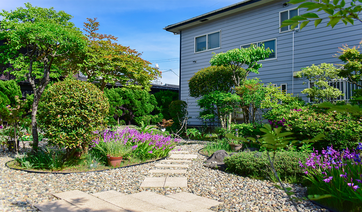 和風住宅のお庭や外構もお声掛けください長野市近隣の外構工事は実例豊富なガーデンファクトリーにお任せください。