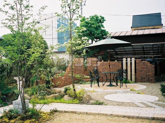洋風のお庭と和風テラスが楽しめる緑に囲まれた新築外構工事No.13776新築外構一式の施工例外構工事のガーデンプラス。