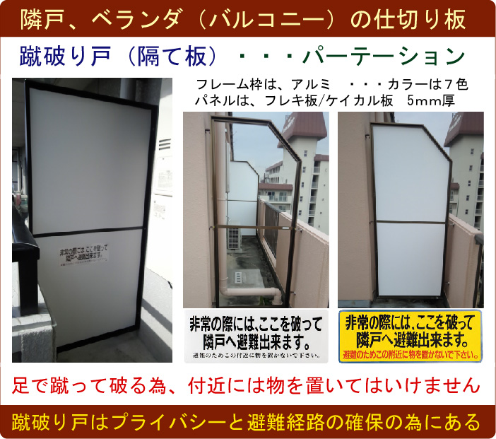 5.避難文字エスデー工業株式会社 ベランダ パーテーション 隔て 製造・販売 埼玉県越谷市。