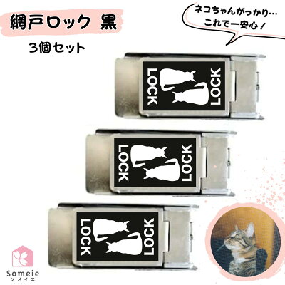 Amazon網戸ロック 3個セット にゃんにゃんストッパー 猫 脱走 防止 補助錠 ブラック網戸。