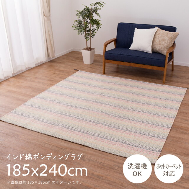 dショッピング ラグ ラグマット 正方形 おしゃれ ネイティブ 西海岸 ナチュラル かわいい 低反発 綿100% 防臭 抗菌 インド綿オールシーズン 柄 ボーダーカーペットリビングラグ 幾何学模様 サンクタムラグ 185×185cm 2畳 厚手滑り止め ラグのみ ネイティブ・ホワイト。