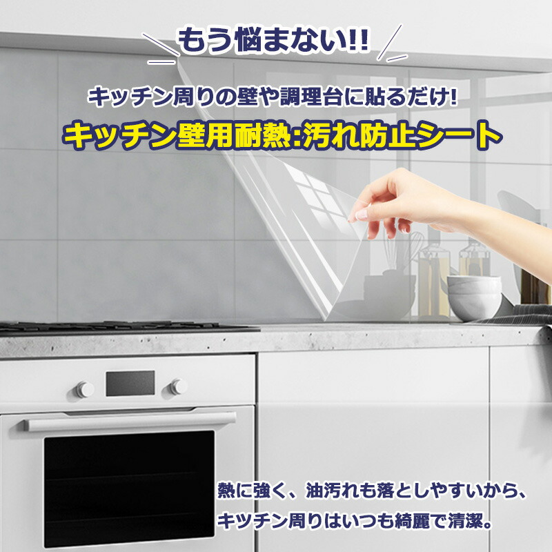 楽天市場 驚きの貼りやすさ キッチン壁用汚れ防止シート 防水 防油 耐熱温度120℃ カットOK キッチン 台所 汚れ防止 クリアシート 保護シート透明 シート 油 汚れ 保護 簡単取付 弱粘着 剥がせる壁紙 ウォールステッカー 壁紙シール コンロ周り DIY 賃貸OK 新生活応援。
