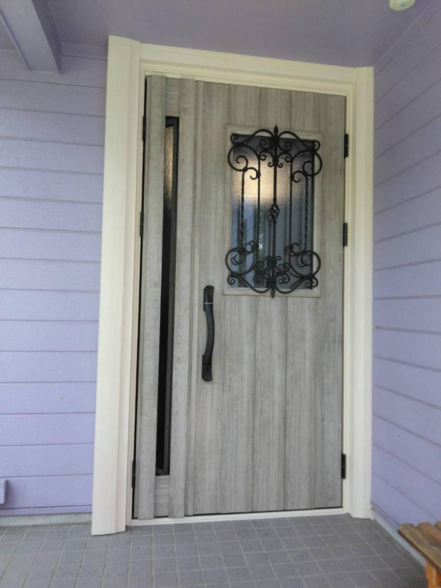 鋳物飾りがおしゃれな玄関ドアに取替え石田ガラスサッシ販売焼津市窓・玄関ドア・エクステリアリフォームのプロショップ。