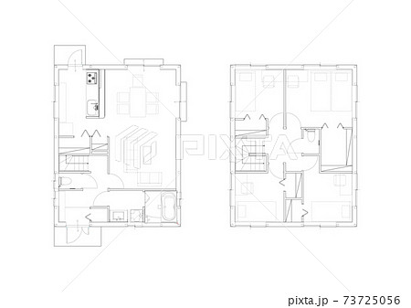 建築設計図 間取図 平面図 住宅 二階建 テレワークスペースのイラスト素材73725056- PIXTA。