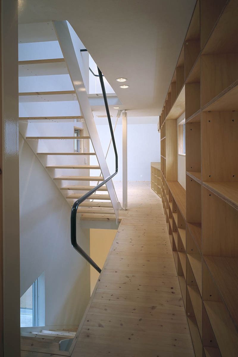 段庭の家』 間取り図というと平面図が一般的ですが、『段庭の家』は断面図から空間の間取りを読み取ることができます。断面から建築を考えるのも一つの手段です。 陽の光を素直に享受できるように、北側に向かって徐々にセットバックしていく階段状のボリュームとし。