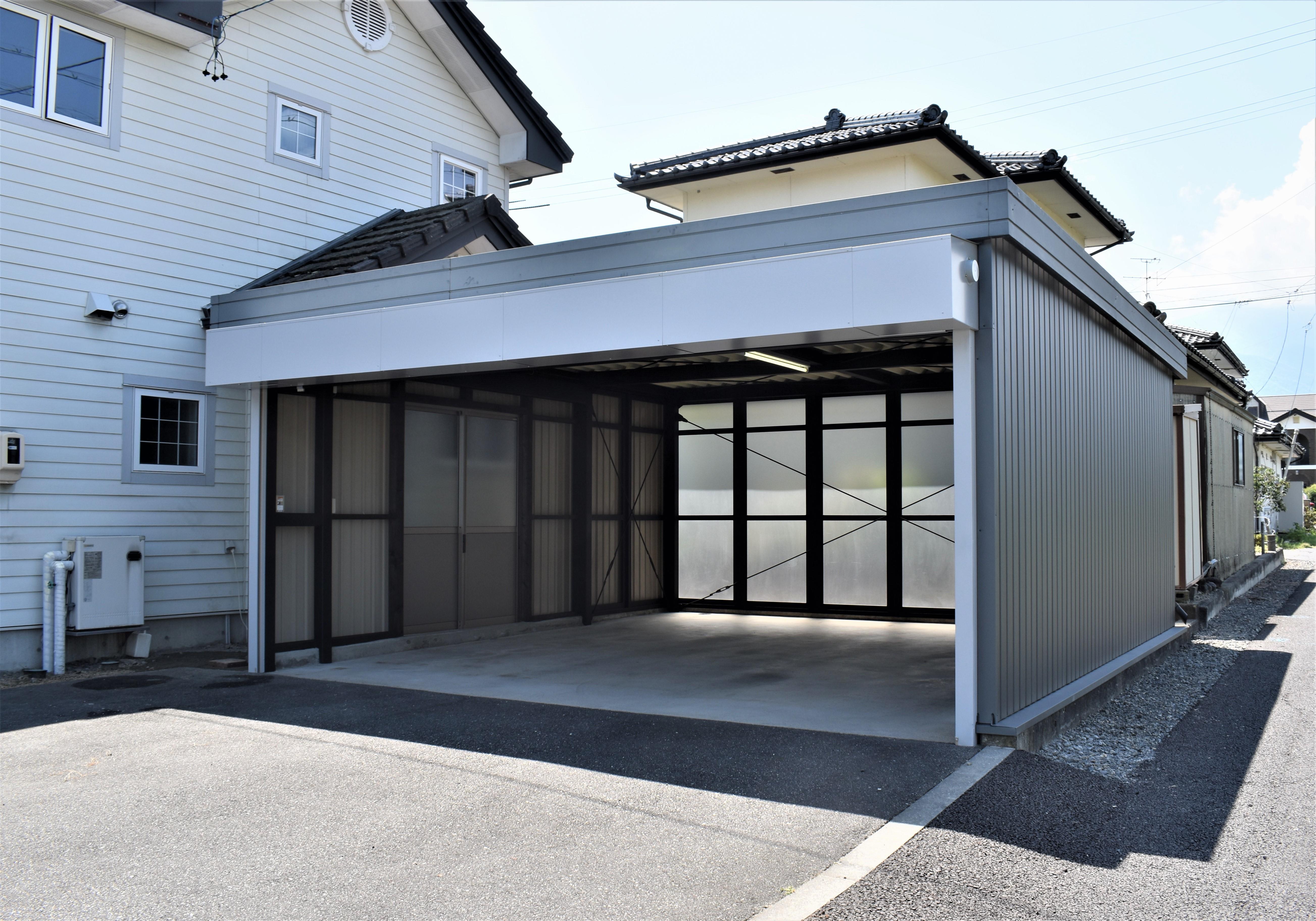 カーポートから電動シャッター付ガレージへ!憧れの電動シャッター付きガレージで快適なモビリティライフを!!安曇野市住宅リフォーム・リノベーション専門のLIXILリフォームショップ。