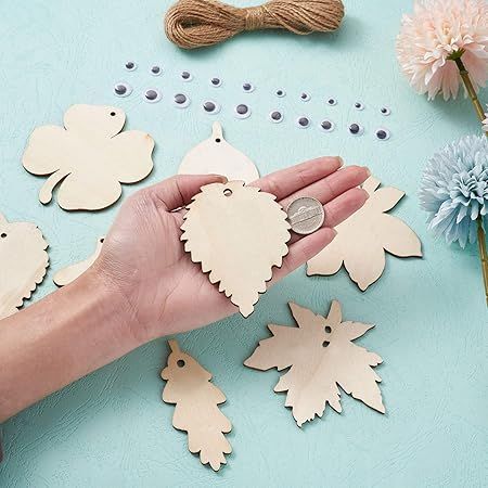 在庫処分 Beadthoven 約40枚 8種類 原木色 葉っぱ 木材チップ 木製タグ 麻ひも 人形目付き 木製スライス 木片 ウッドペンダント 無地染色なし 絵画可 リーフ形 天然木 カード DIY素材 工芸品 パーティー 部屋飾り ホーム装飾品 07.川合牧人大鉢約φ42cm。