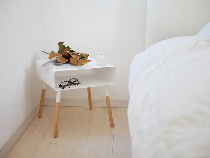 ベッドサイドをミニマルに。狭い部屋でも床をフル活用できるナイトテーブル。