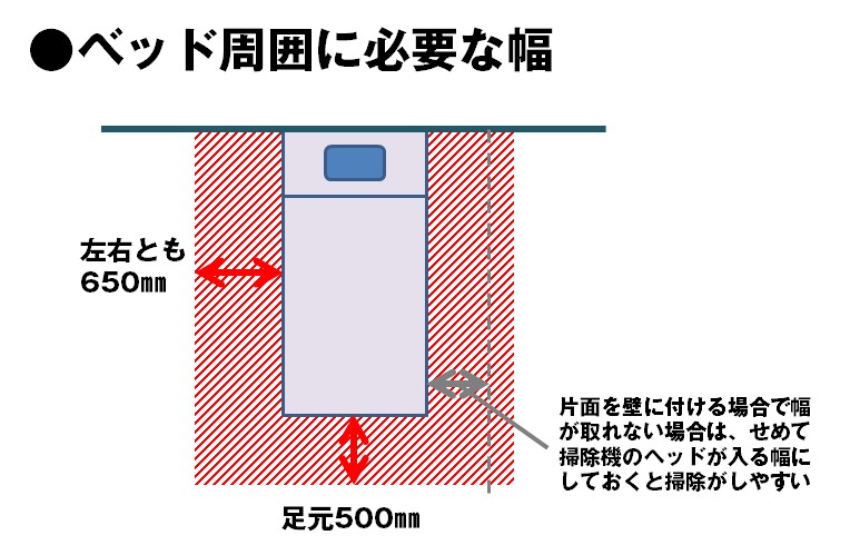 ベッドの「サイズ」&「周囲に必要なスペース」は。