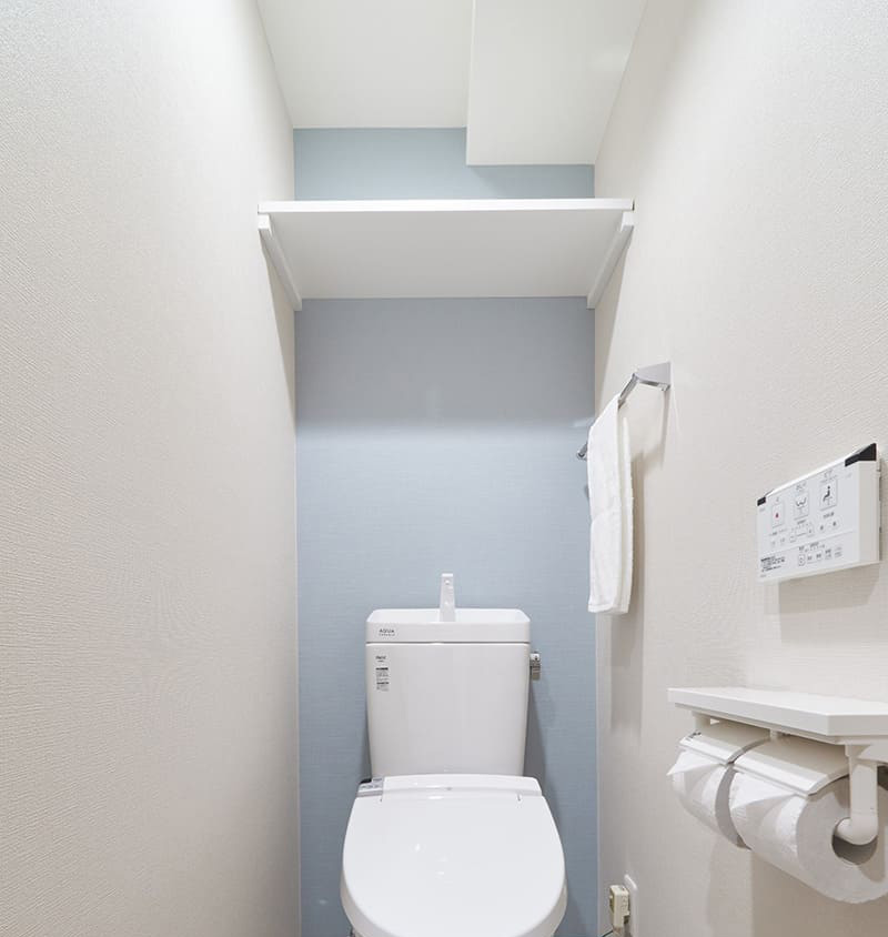 施工事例:トイレリフォーム 水色のアクセントクロスが映えるシンプルなトイレ 大阪・兵庫・奈良・京都・名古屋・東京のリフォームはナサホーム。