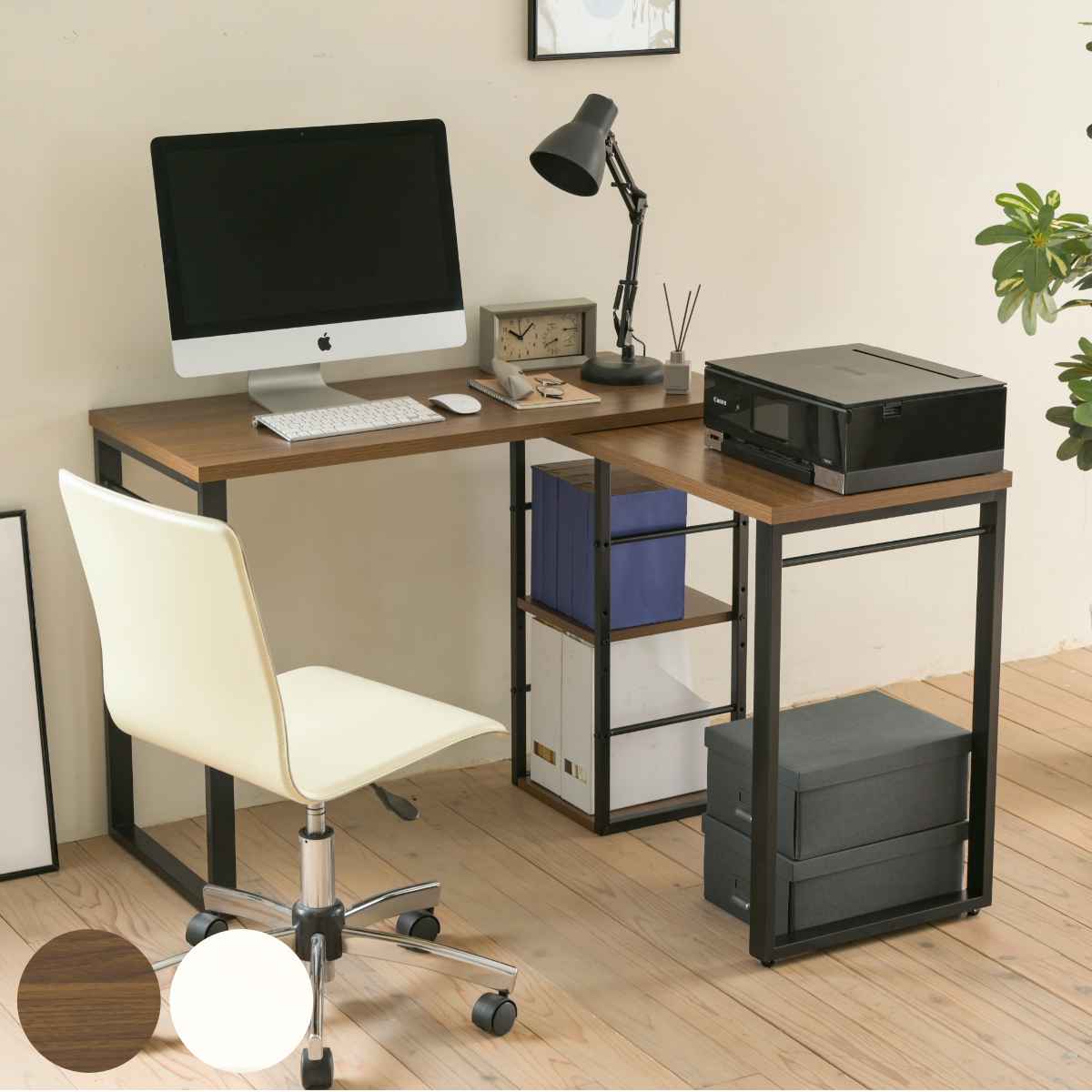 パソコンデスク I字型 省スペース 広い L字スタイル 木目調コーナーデスク 回転 ツインデスク デスク PC パソコン ワークデスク 机勉強机 小さめ コンパクト 大人 木製 白 ブラウン リビング 収納 棚付き 約 幅 165cmデスク。
