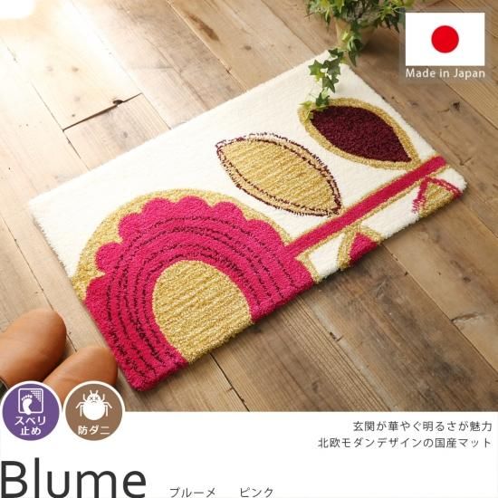 かわいい北欧ナチュラルモダンデザイン玄関マット 『ブルーメ ピンク 玄関マット』 - ラグ・カーペット通販 びっくりカーペット。