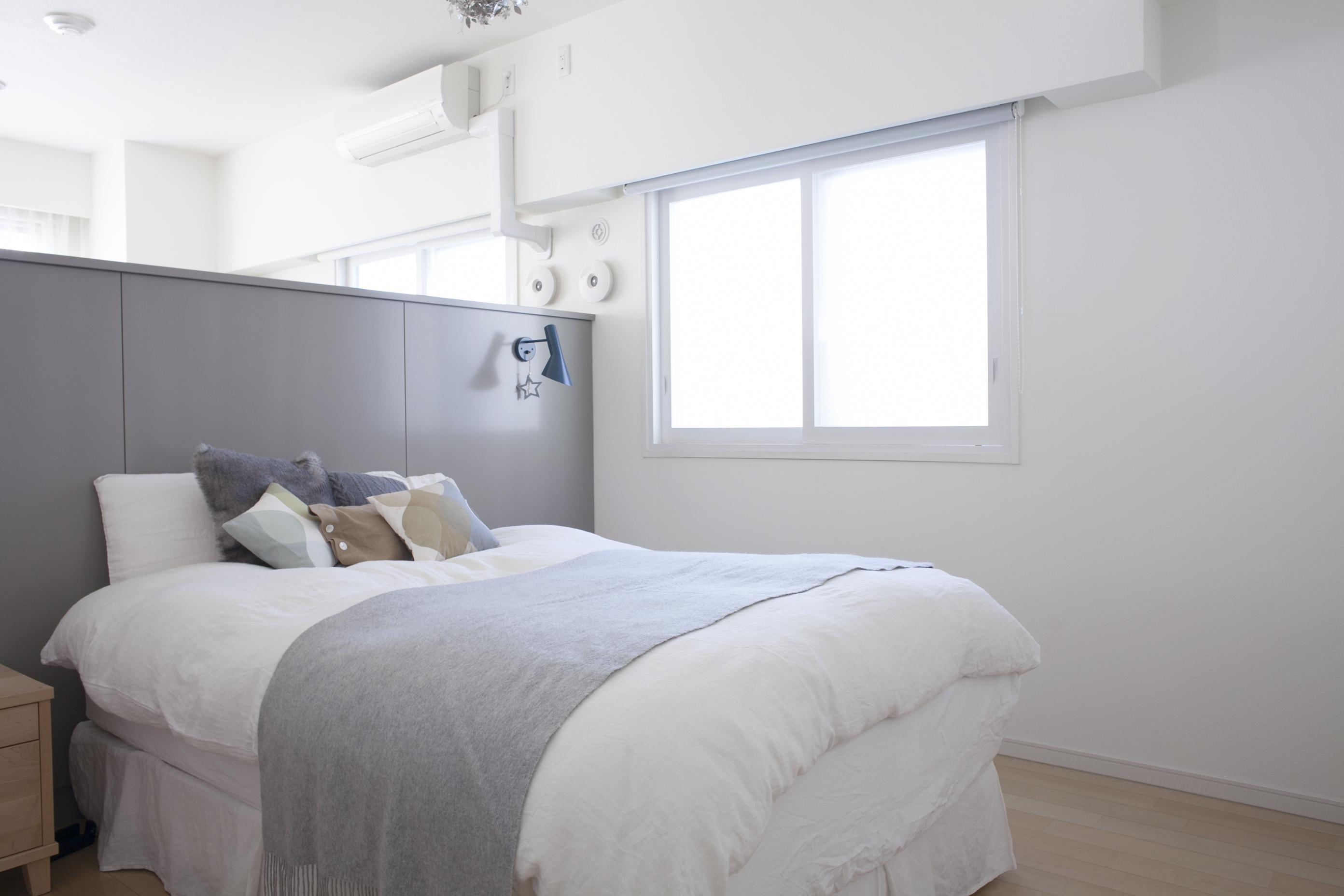 ホワイト&グレーの光が差し込む寝室 S邸- ベッドルーム事例SUVACO スバコ。