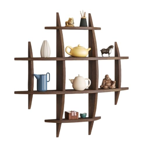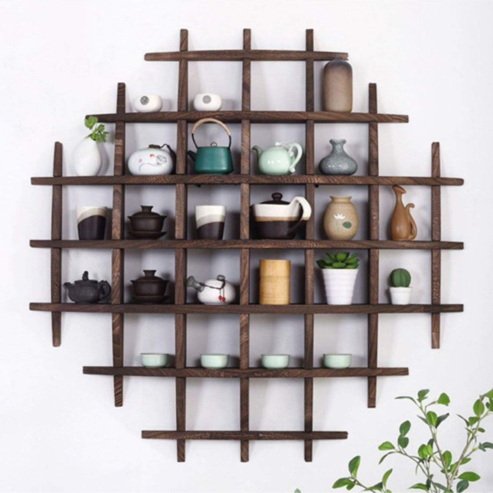 木製 壁掛け棚 アンティーク調ウォールシェルフ・オープンラック茶器収納・香炉台・ディスプレイ棚格子デザイン 自然素材 インテ Amazonアンティーク棚 木製 アンティーク 調 飾り棚 ラック ウォールシェルフ アンティーク風香炉台 アンティーク 棚花台 珍品棚。