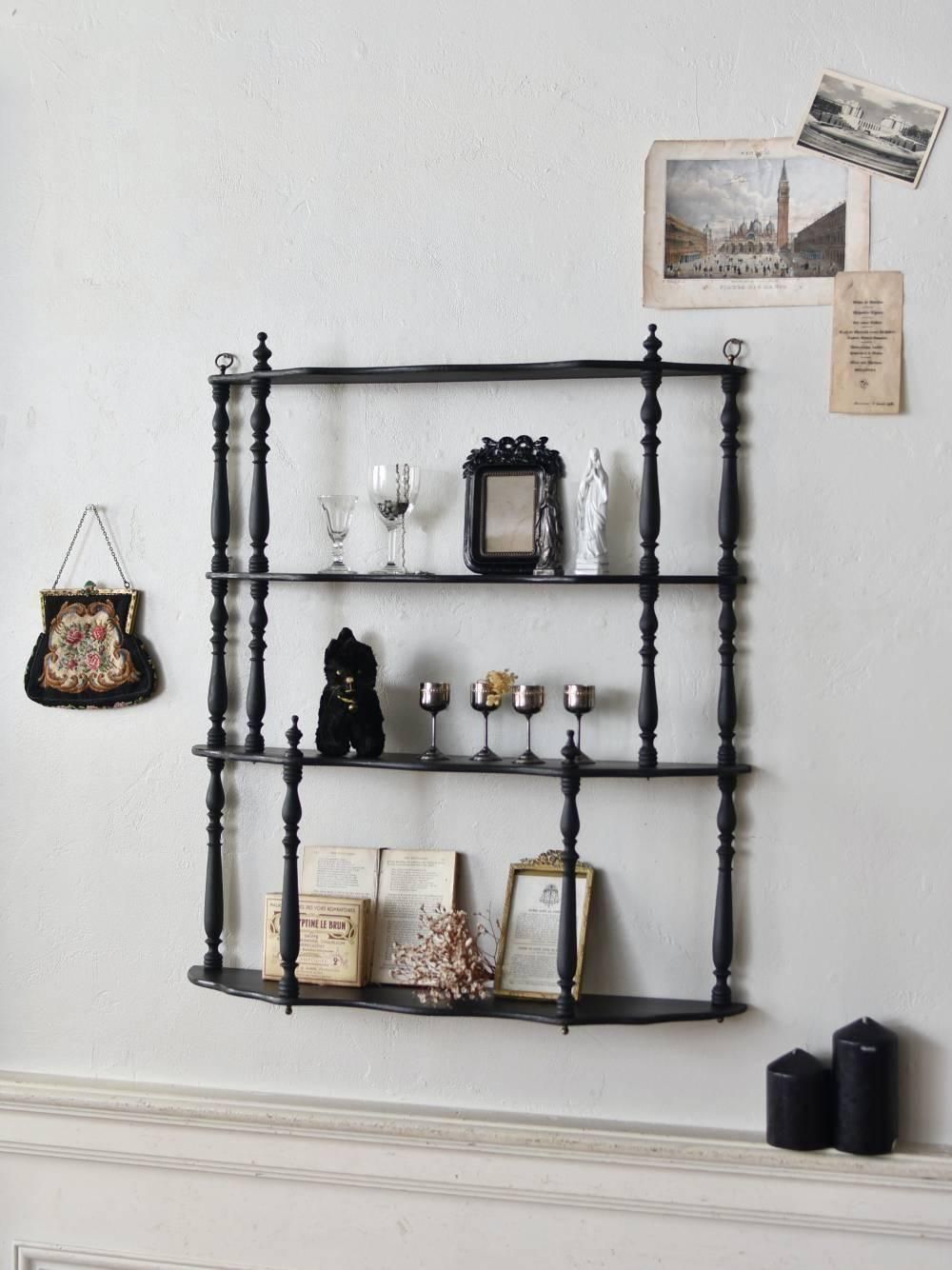 黒ペイント 4段 壁付け棚 壁掛けラック ナポレオンシェルフBrocante de La Cocotteフランスアンティーク・ドライフラワーのお店。