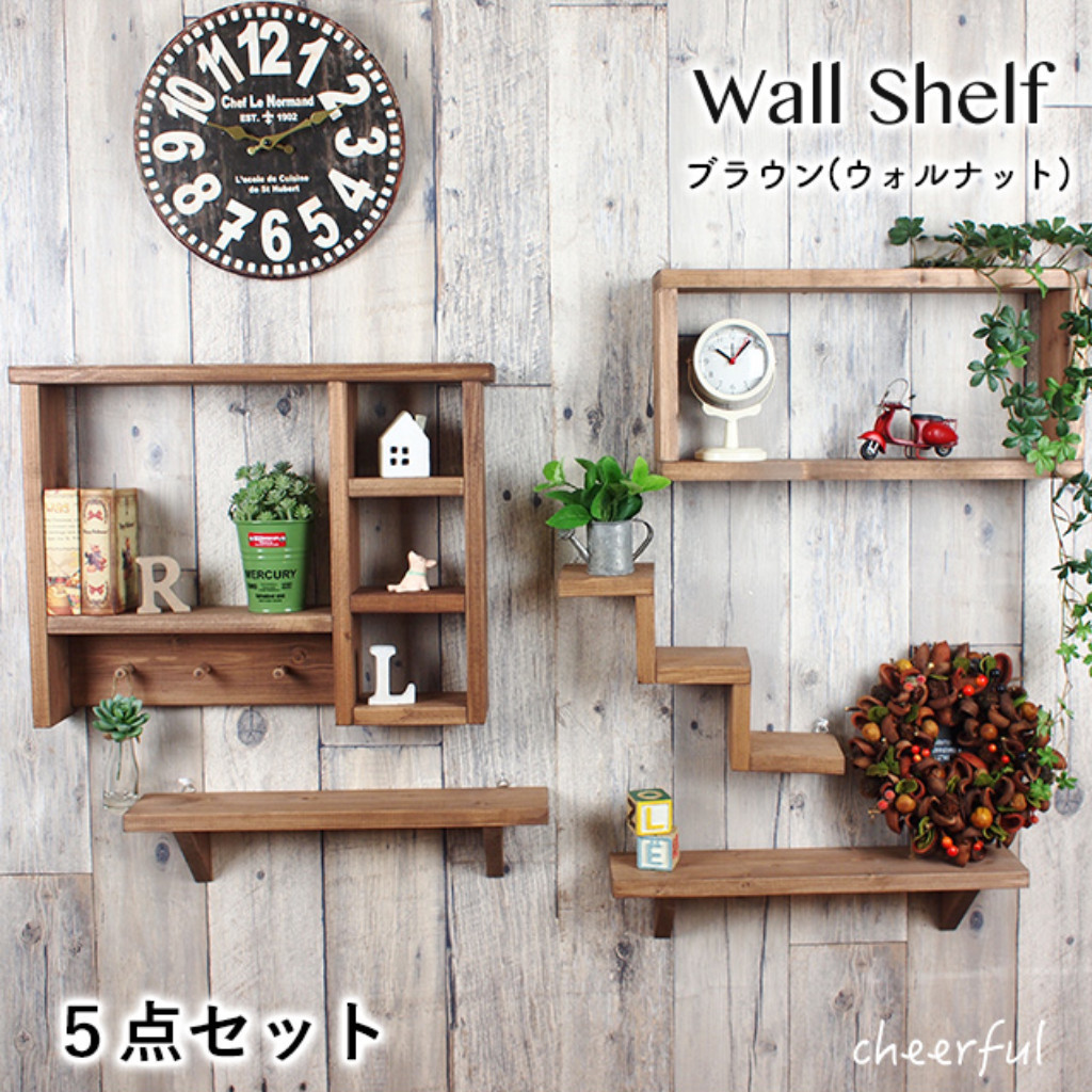 ビンテージ ウォールラック 壁掛け棚 ウォールシェルフ ブックラック ウォールシェルフ ウォールラック 飾り棚 壁付け 壁掛け ラック おしゃれアンティーク 雑貨 押しピン 画鋲 賃貸 木製 ブラウン 茶 5点セット : 雑貨屋フェリーチェ - 通販 - Yahoo!ショッピング。