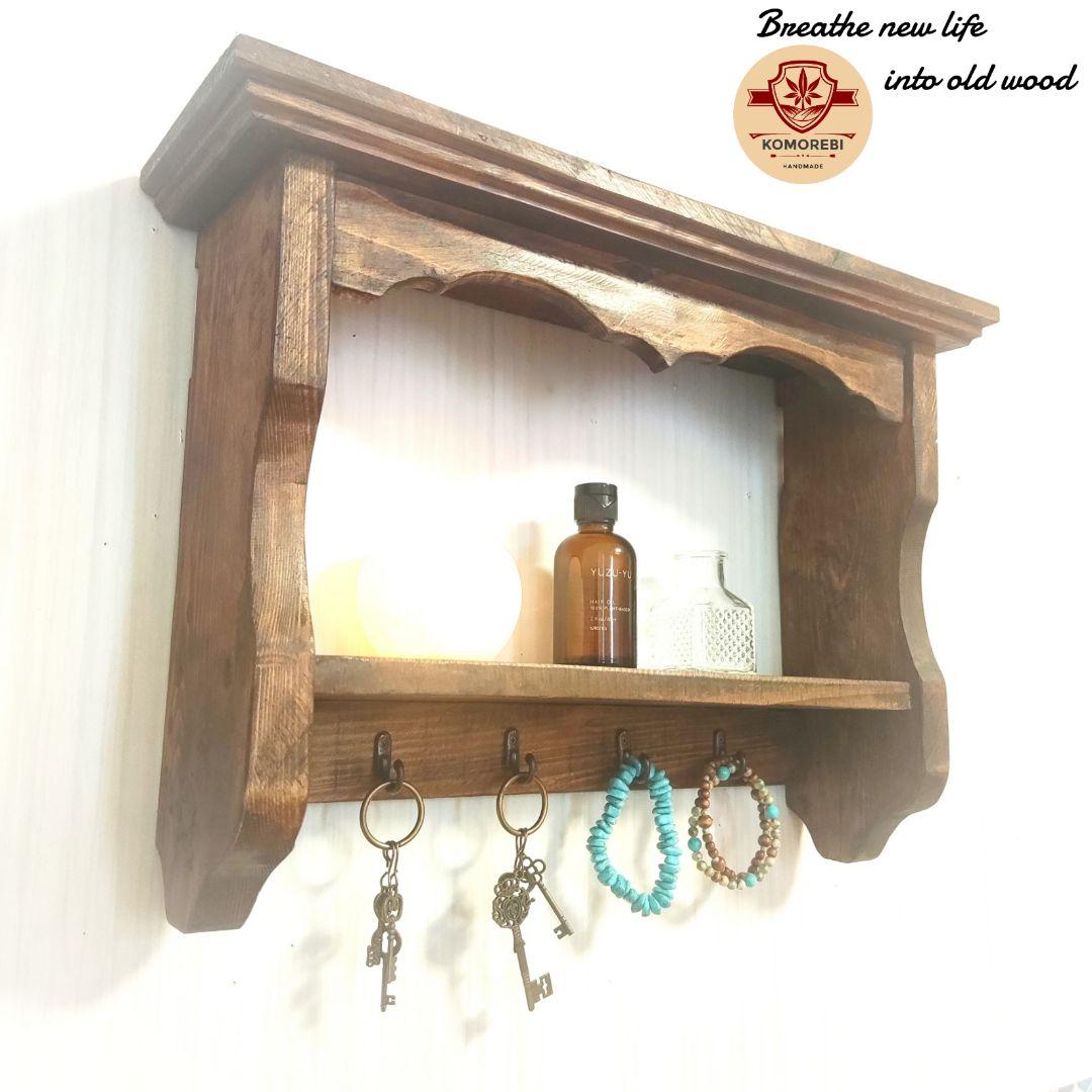 色変更OK・オーダー対応 ハンドメイド 木製ウォールラック アンティーク風シェルフ ウォールシェルフ D 賃貸 カギ キー 収納 玄関 ラック 木製石膏ボード 壁掛け 棚 店舗 サロン アンティーク 壁掛けラック・ウォールシェルフ オーダーメイド 家具 LAVIE24 通販。