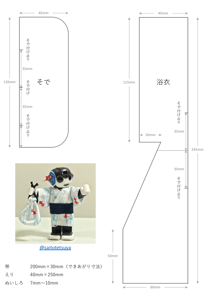 ロボホン用浴衣の型紙 -◉ - ◉ <さいとてつや。