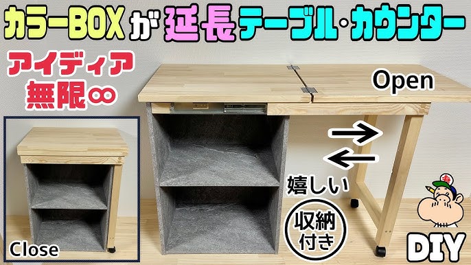 DIYカラーBOXカウンターテーブル カラーボックス無限アレンジ!!簡易カウンターの作り方!!必要な時に出せるテーブルはキッチンにもお部屋にも、あると便利!いらないときは畳めて収納できる。