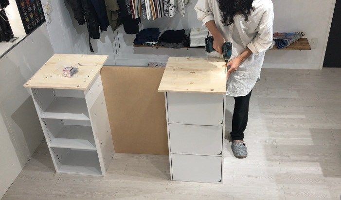 カラーボックスDIY 収納カウンターに変身!2時間で完成 作り方解説。