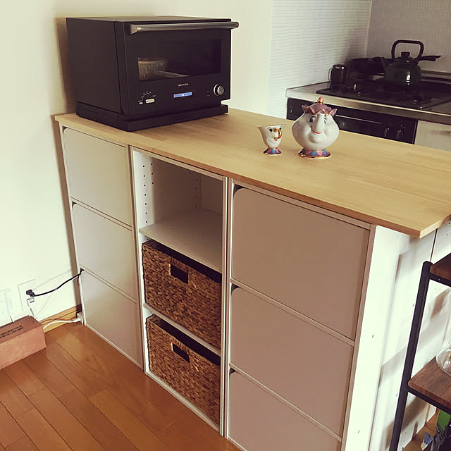 ニトリのカラーボックスを使ったキッチンカウンターDIYアイデア。