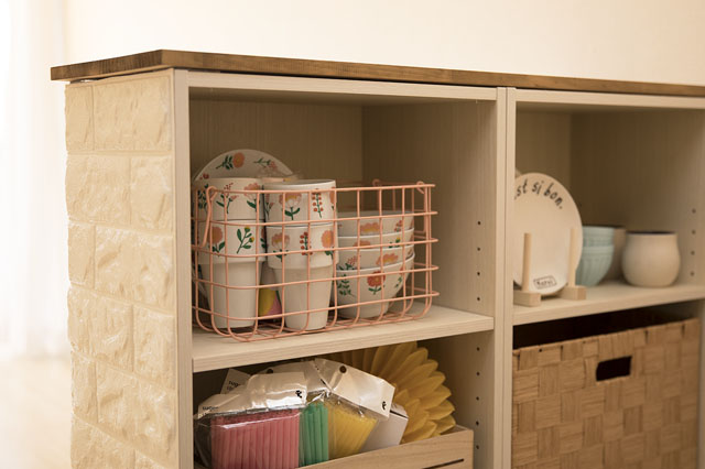 新生活・一人暮らし ニトリのカラーボックスでカウンター食器棚をDIY - ラシクハタラク - 好きなことをシゴトに。