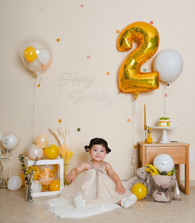 Autumn Yellow 2nd Birthday : 秋生まれのイエローデコレーション バースデー - リトルレモネードバルーン&パーティープランナ。