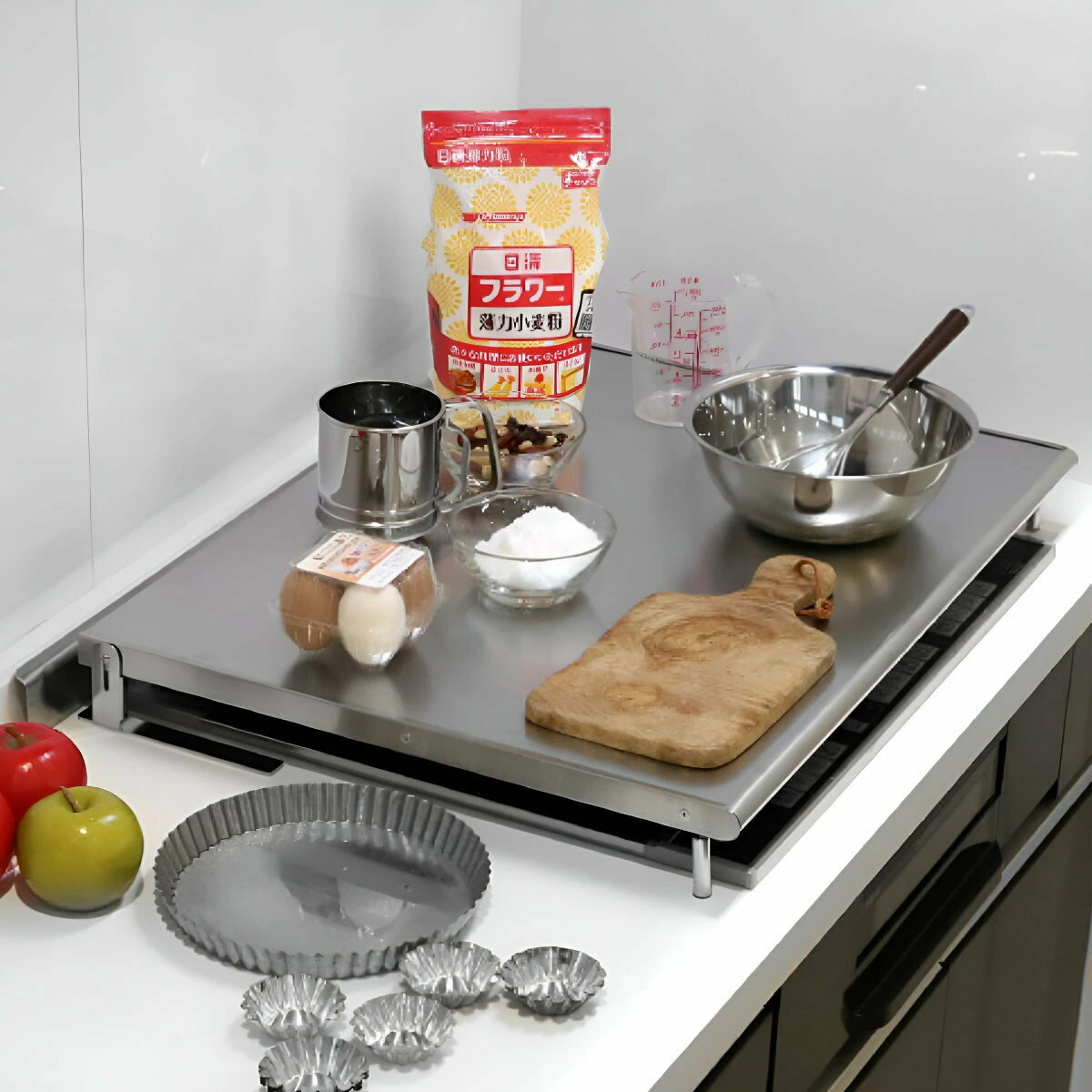 キッチン作業台 ガスコンロカバー 作業台 レンジカバー 油ハネガード IHコンロカバー ステンレス ガスレンジカバー 洗える IHコンロ台 コンロ上食材置き 鍋置き 調理スペース ガスコンロ対応 IH調理器 省スペース キッチン収納 汚れ防止 シンプル 丈夫。