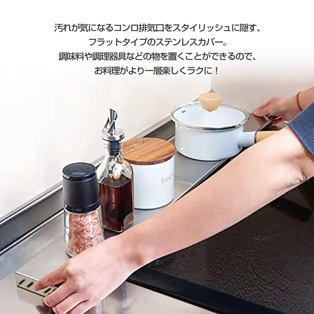 楽天市場 排気口カバー 60cm スリム フラット ガス IH コンロ日本製 高級ステンレス鋼使用 厚さ1.2mmコンロカバー フラットグリル カバー レンジガード コンロ奥ラック ヘアライン加工 紀州名匠作品 : STCJapan。