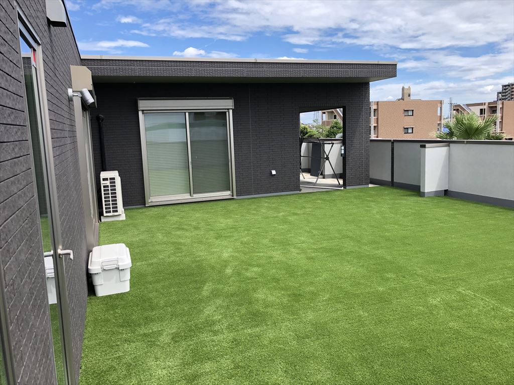 FRP防水の屋上・バルコニーにおすすめな水はけの良い床マット付き人工芝やねキャン。