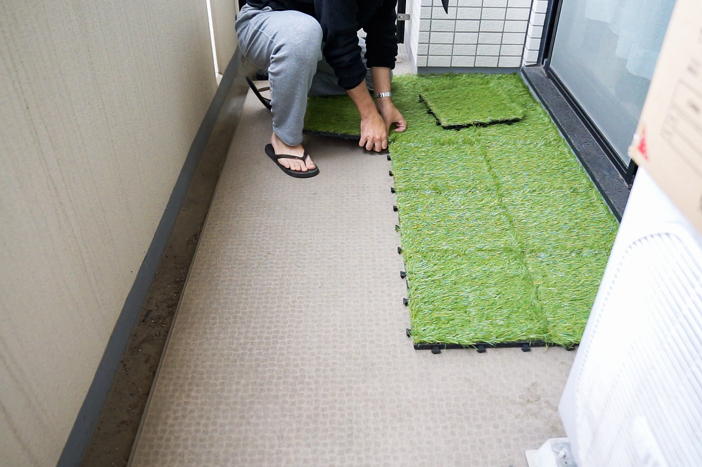 ベランダDIY!人工芝デッキパネルの敷き方 BeTerrace人工芝タイプRESTA。