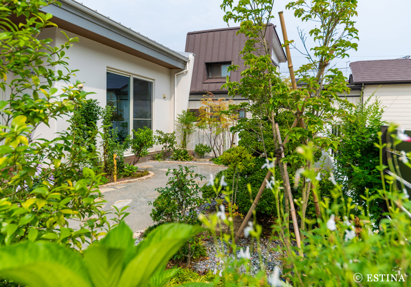 母屋と離れ、2つの家族を繋ぐ庭シンプルモダン施工事例ESTINA エスティナ つくば。