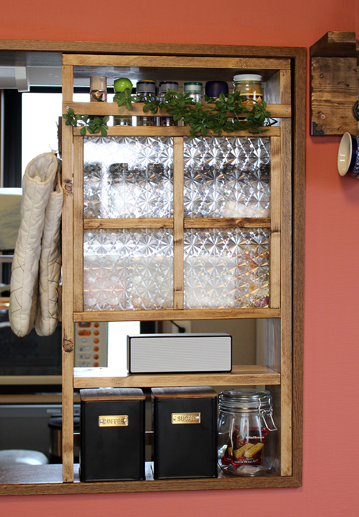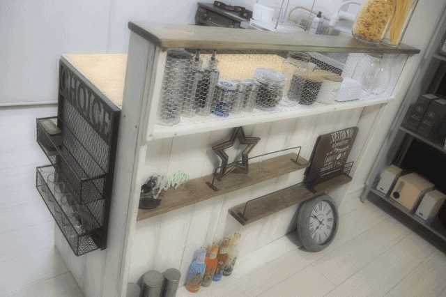 DIYでキッチンの飾り棚を作る!おしゃれディスプレイに!もじゃロックのDIY田舎暮らし3.0ブログ。