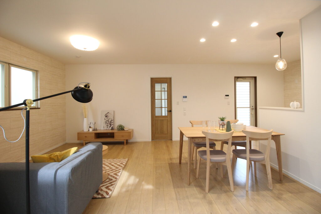 ベージュで統一されたインテリアが秀麗な北欧モダンの平屋株式会社福岡工務店。