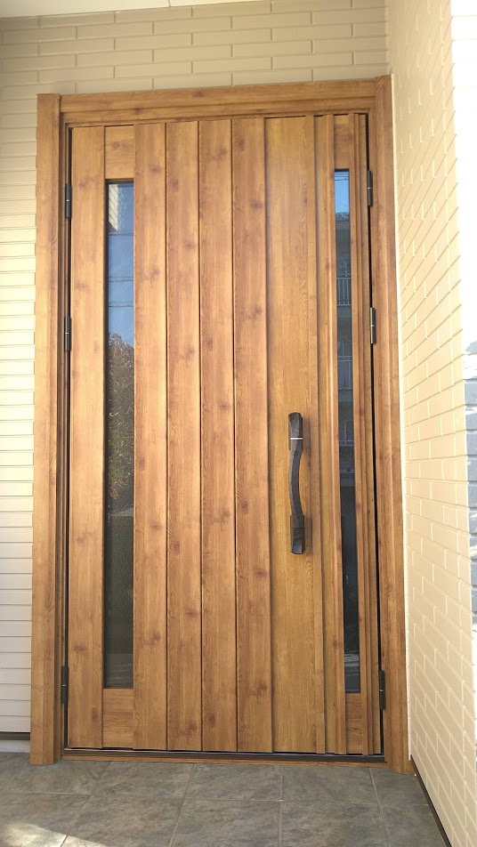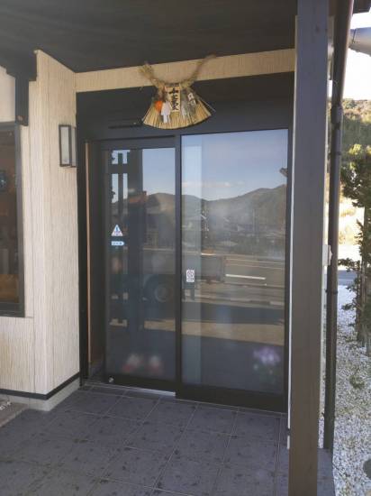 玄関引戸のガラスに和紙調フィルムを貼って質感がレベルアップ!窓・ドアリフォームの専門店熊本のフクシマ建材。
