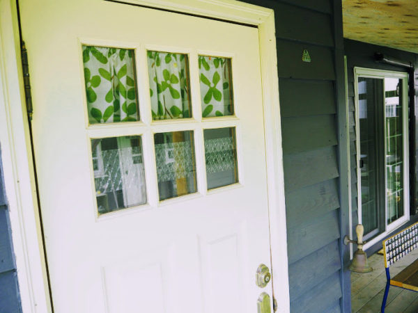 玄関ドアの窓ガラスにカーテンと窓ガラスフィルムで目隠し! - スプンク。