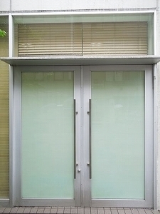 事務所の非常口ドアガラスに目隠しフィルムを貼りました。