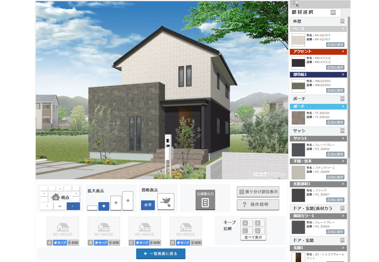 ケイミュー外観シミュレーション外壁材・屋根材・雨といのケイミュ。