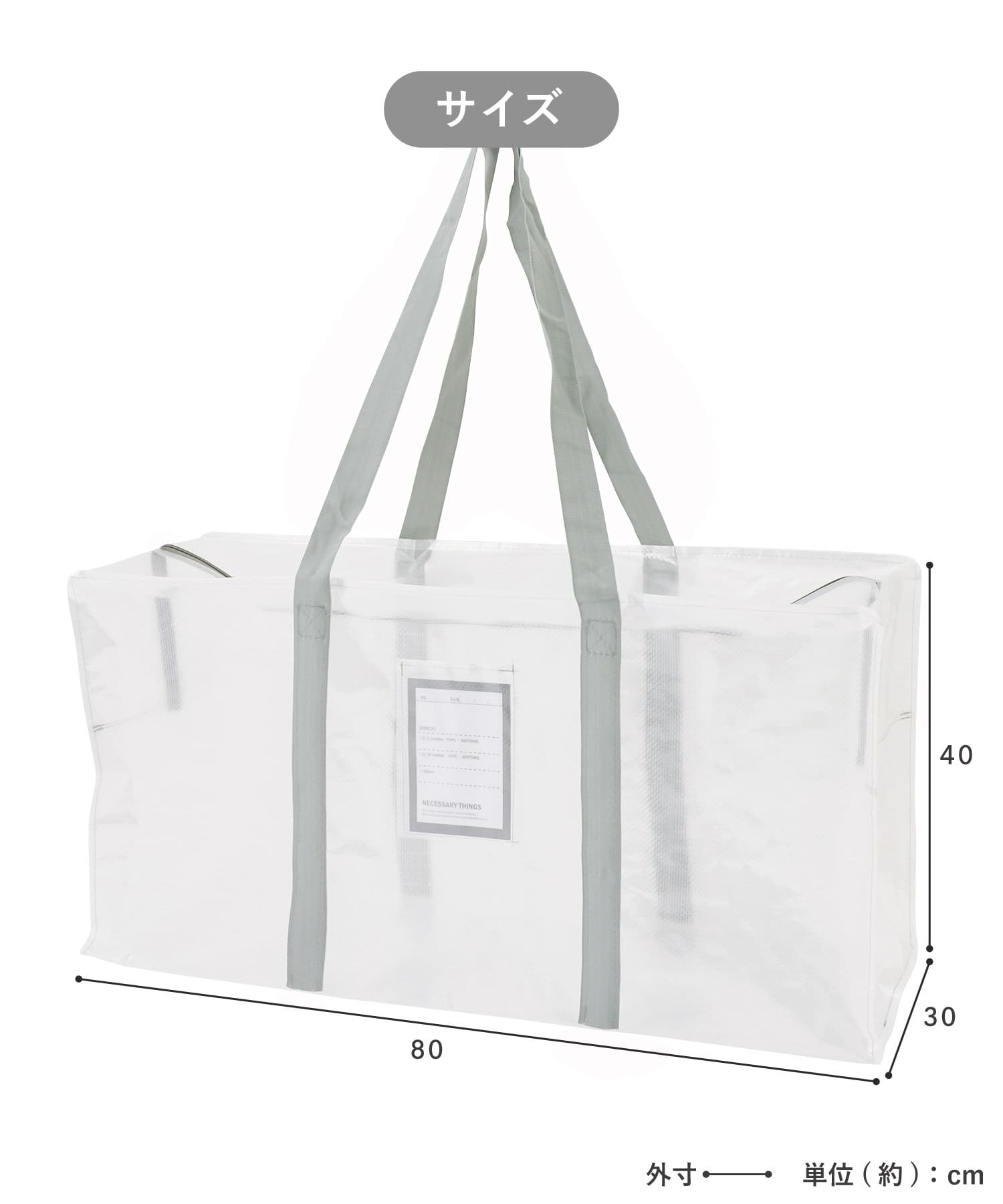 引っ越し収納袋 半透明 大 クリアボックスバッグ縦:L クリア収納シリーズ3COINS。