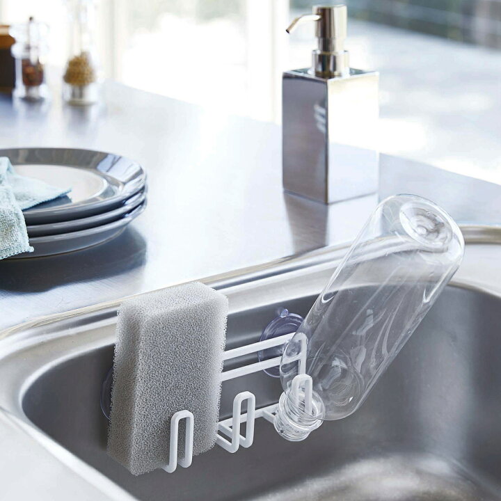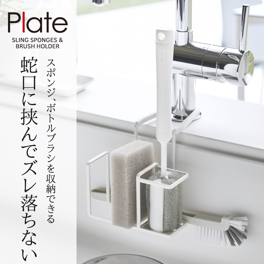 蛇口にかけるスポンジ&ブラシホルダー プレート ホワイト 山崎実業 plate 蛇口 スポンジホルダー 浮かせる シンク キッチン おしゃれモノトーン ホワイト 5082ココチのくらし雑貨店。