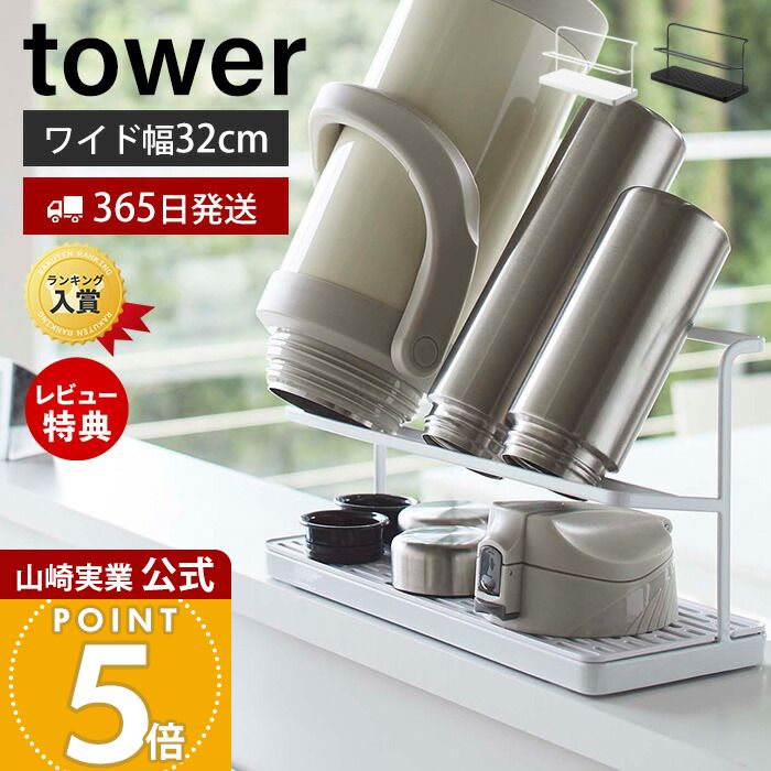 楽天市場 ワイドジャグボトルスタンド タワー 水筒 スタンド 水切りラック ボトルスタンド おしゃれ 干す 乾燥 水筒置き ボトルラック タンブラーペットボトル 収納 コンパクト スリム キッチン 水筒干し 哺乳瓶ラック tower 山崎実業 公式 ホワイト 黒 5409 5410 works。