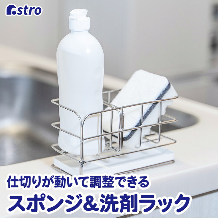 楽天市場店内最大20%OFFクーポン スポンジラック スポンジホルダー スポンジ置き ステンレス シルバー約幅17.5×奥行8.5×高さ9.5cm 仕切り付き 洗剤 洗剤ラック 水切り ラック スポンジ ボトル ブラシ ボトルスタンド キッチン 収納 雑貨台所用品 アストロ 711-50。
