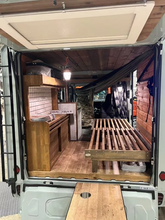 なんと車内に薪ストーブって大丈夫?山小屋風の軽キャンピングカー!CAR FACTORY TARBOWのBug-truck PANEL VAN バグトラックパネルバン- ライブドアニュース。