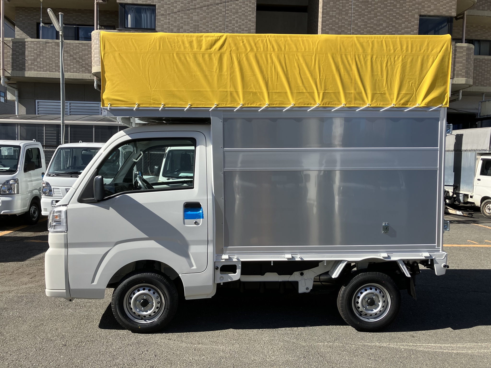 特装車両のご紹介カワハラボディー軽トラックパネルボディ制作・製造・販売軽パネルバン軽トラ 宅配車両軽アルミバン軽トラ幌車大きい庫内。