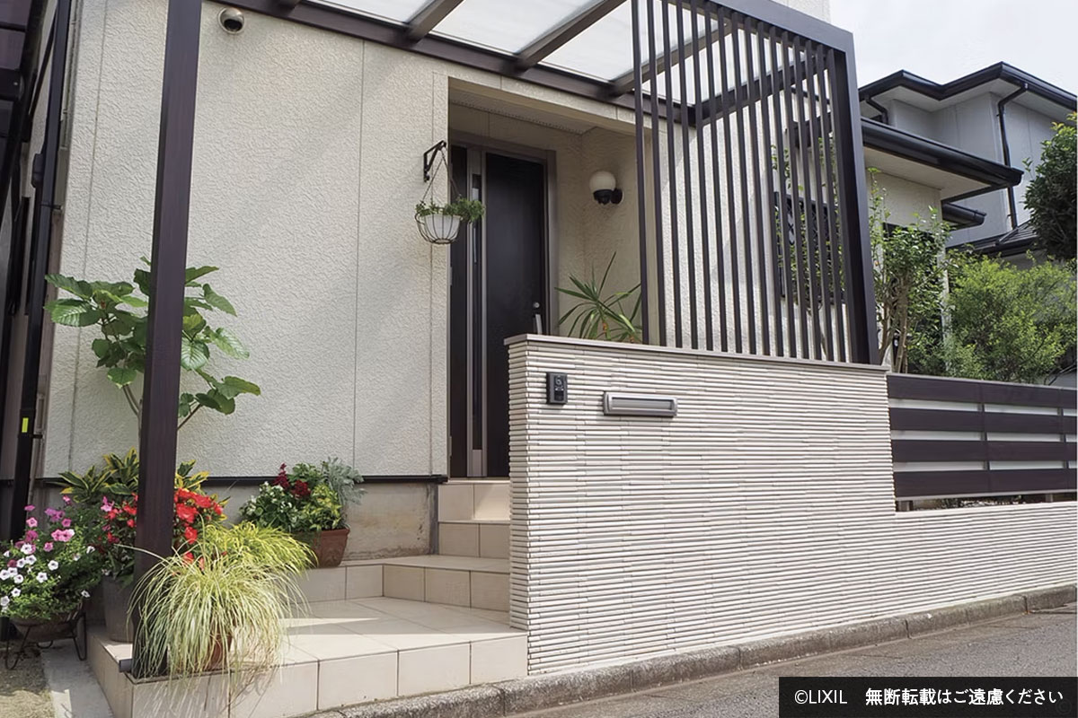 玄関前が狭い外構・道路から玄関が近い外構」の施工事例作り方のポイントも解説つくばガーデンイオンモールつくばエクステリア展示場。