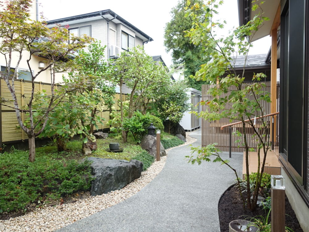 和風住宅の奥行きのある玄関アプローチとお庭 – ガーデンスタジオ雅楽庭・新光園 – 新潟の庭・ガーデニング&外構・エクステリアデザイン工事。
