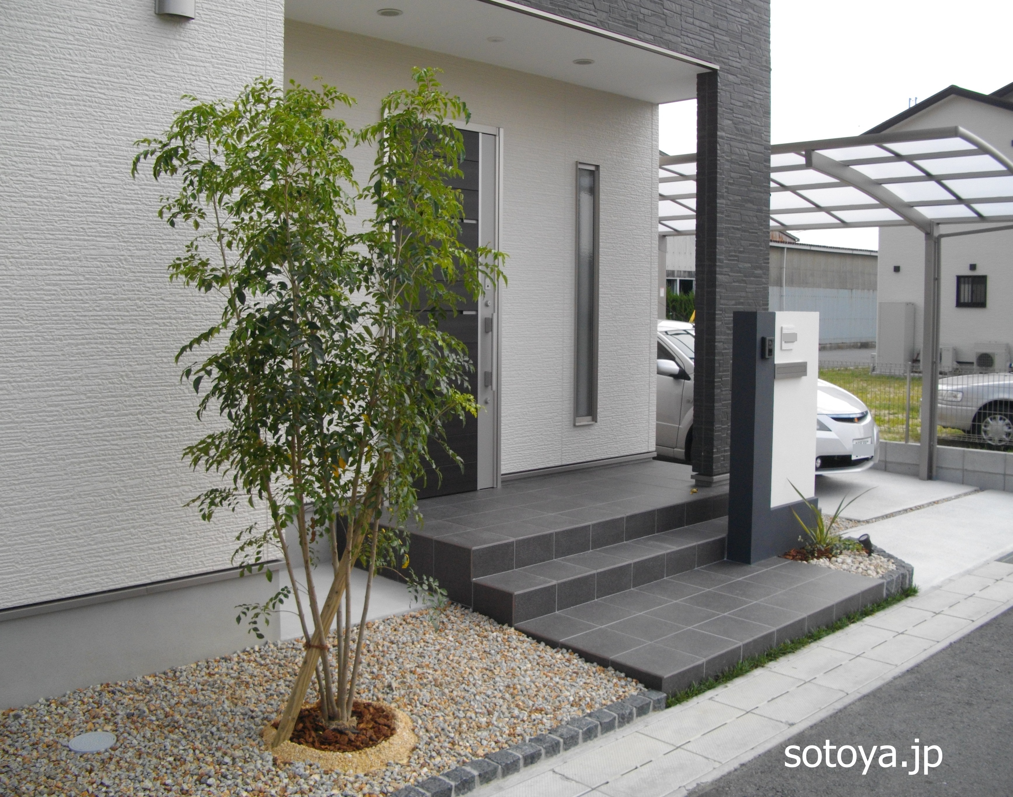 道路から玄関までが近いお家のエントランス滋賀・京都・大阪のエクステリアと外構工事SOTOYA。