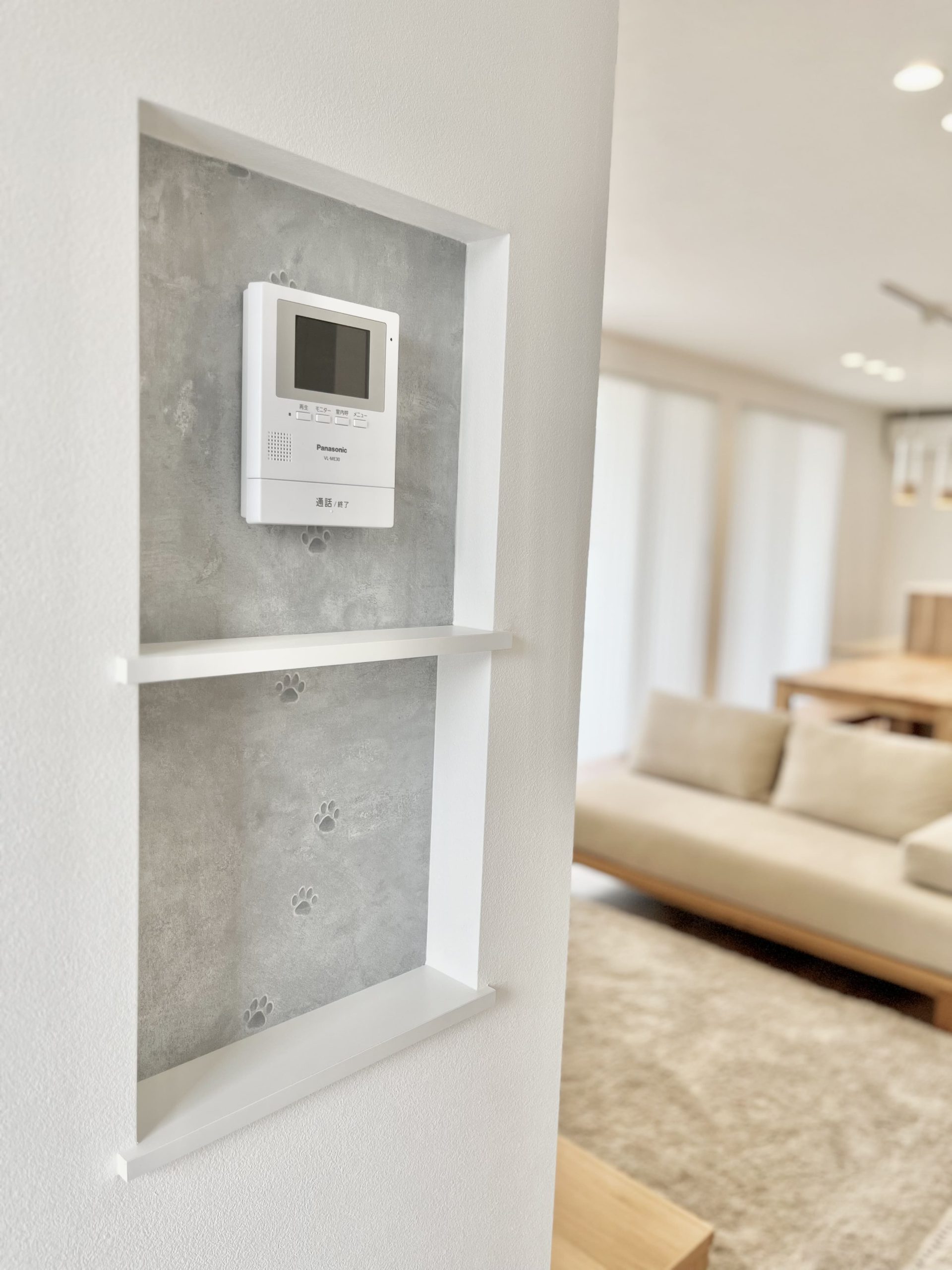 インターホンやリモコンをニッチの中に入れれば、スッキリ&おしゃれで個性あふれるポイントに! l子育て世代が暮らしやすすぎる家づくりブログ アトリエカドル。