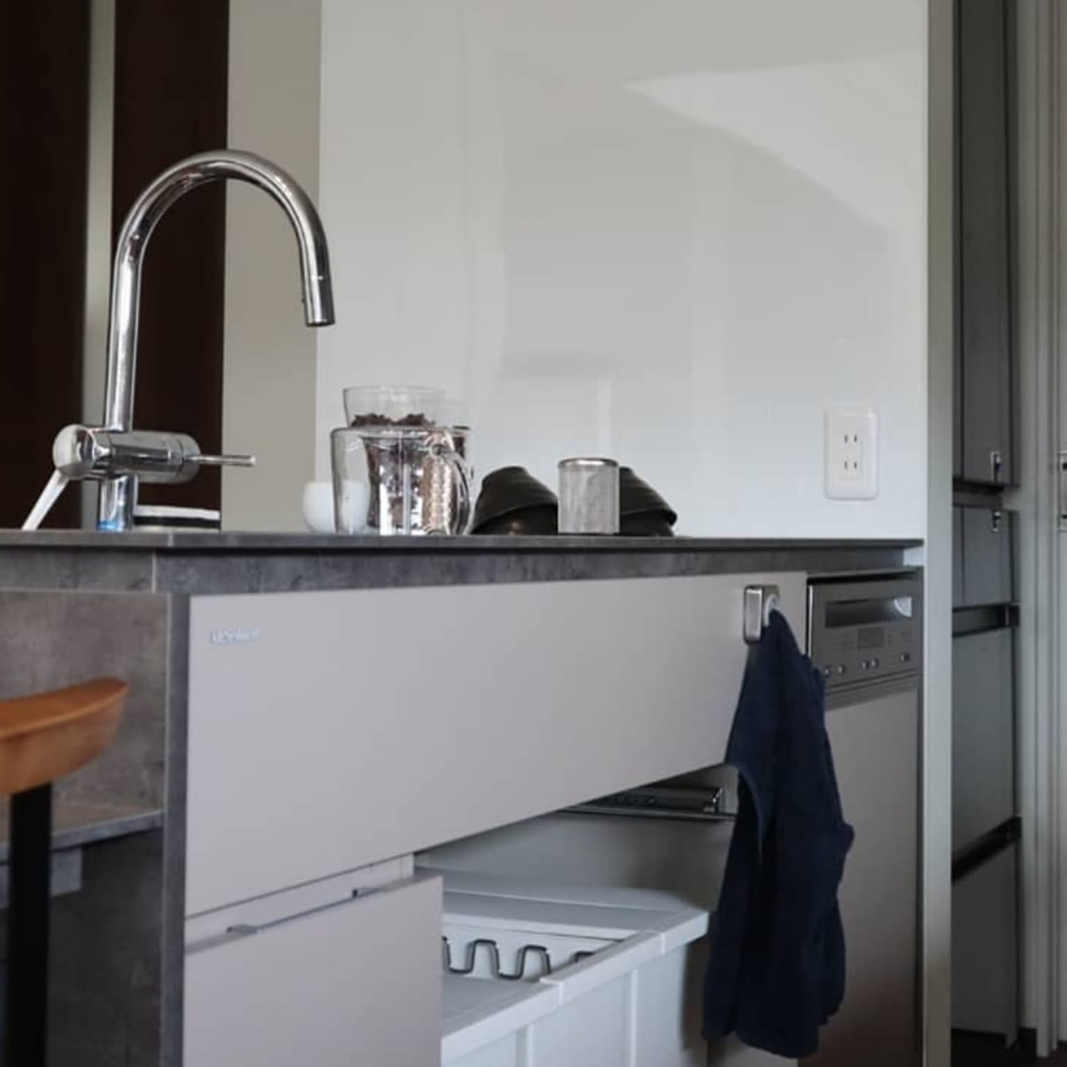 モデルハウスのキッチン素敵😍マイホーム家づくりルームツアー注文住宅新築一戸建て一軒家リビング工務店がつくる家設計士とつくる家スマホで買える建築家の家平和な日常奈良県大阪府diy間接照明間取り図グラフテクトキッチン。